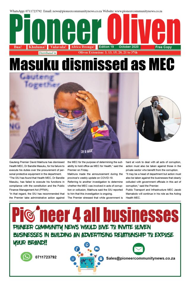 Home Business Pioneer Oliven October edition BusinessCommunityEducationHealthPioneer OlivenSport Pioneer Oliven October edition November 8, 2020 1455 0 Facebook Twitter Google+ Pinterest WhatsApp Pioneer Oliven October